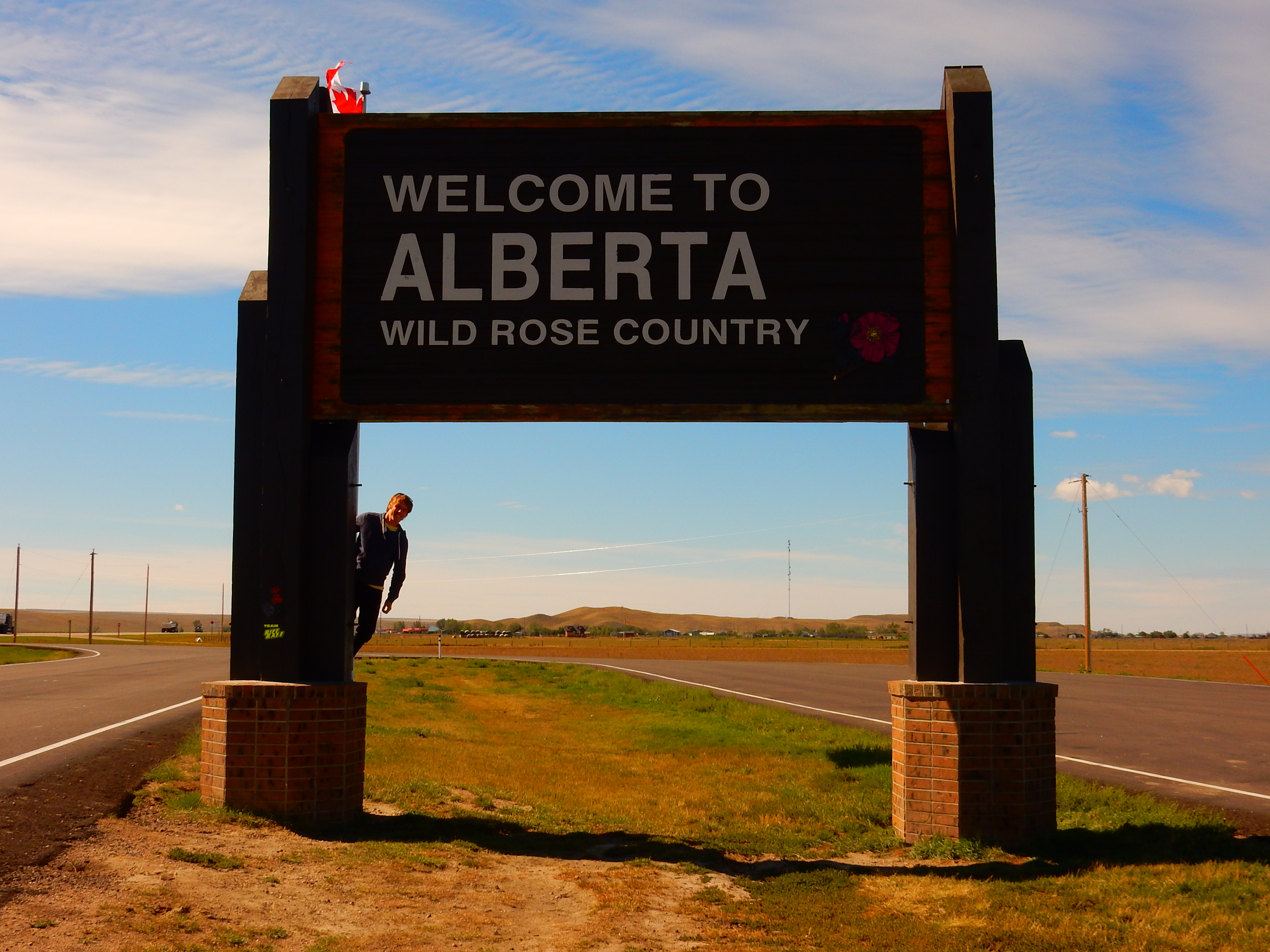 Back on the road – we stopped briefly in Swift Current, SK at old friend Tim’s for coffee, and then crossed into Alberta!