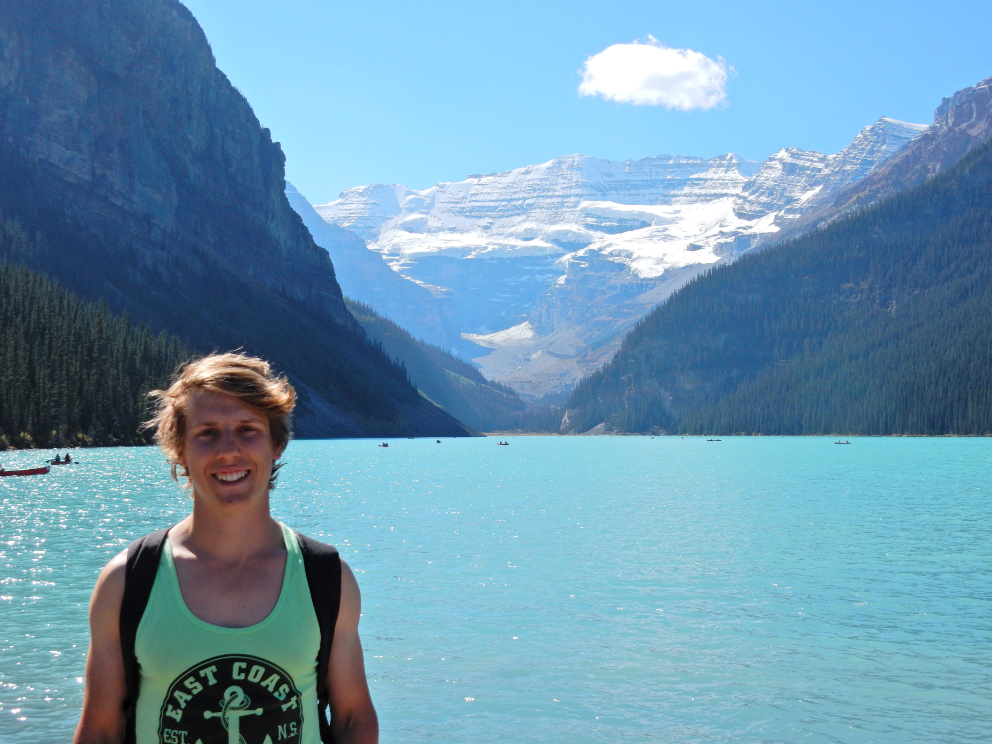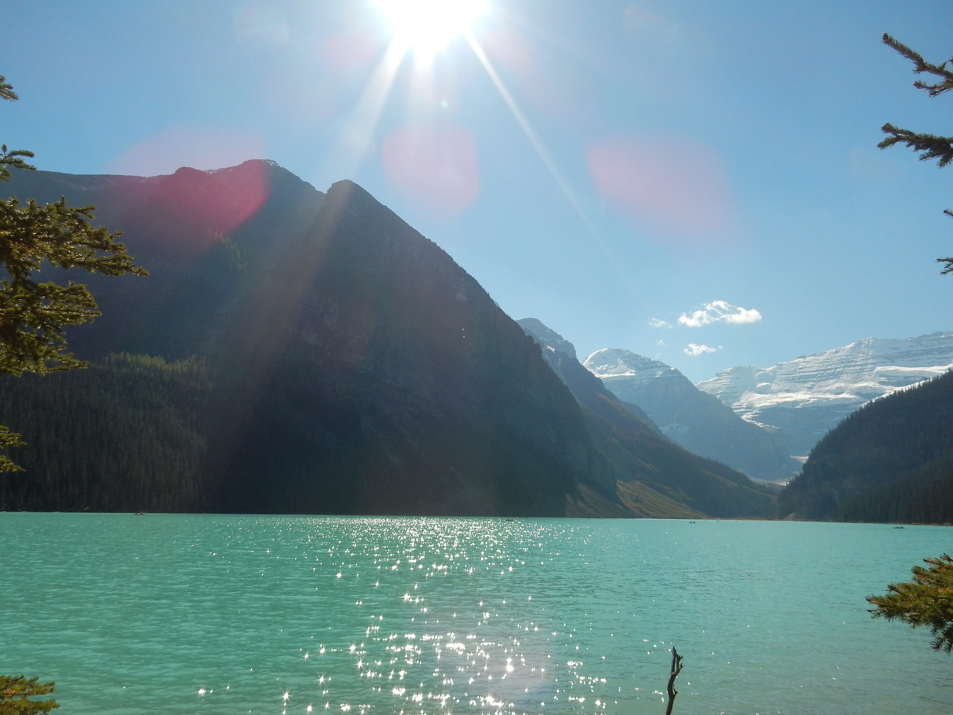 And Lake Louise did not disappoint.  This glacial lake sparkled like a giant sapphire in the mid-afternoon Sun and is framed by two magestic peak (no wonder we saw so selfie-sticks).