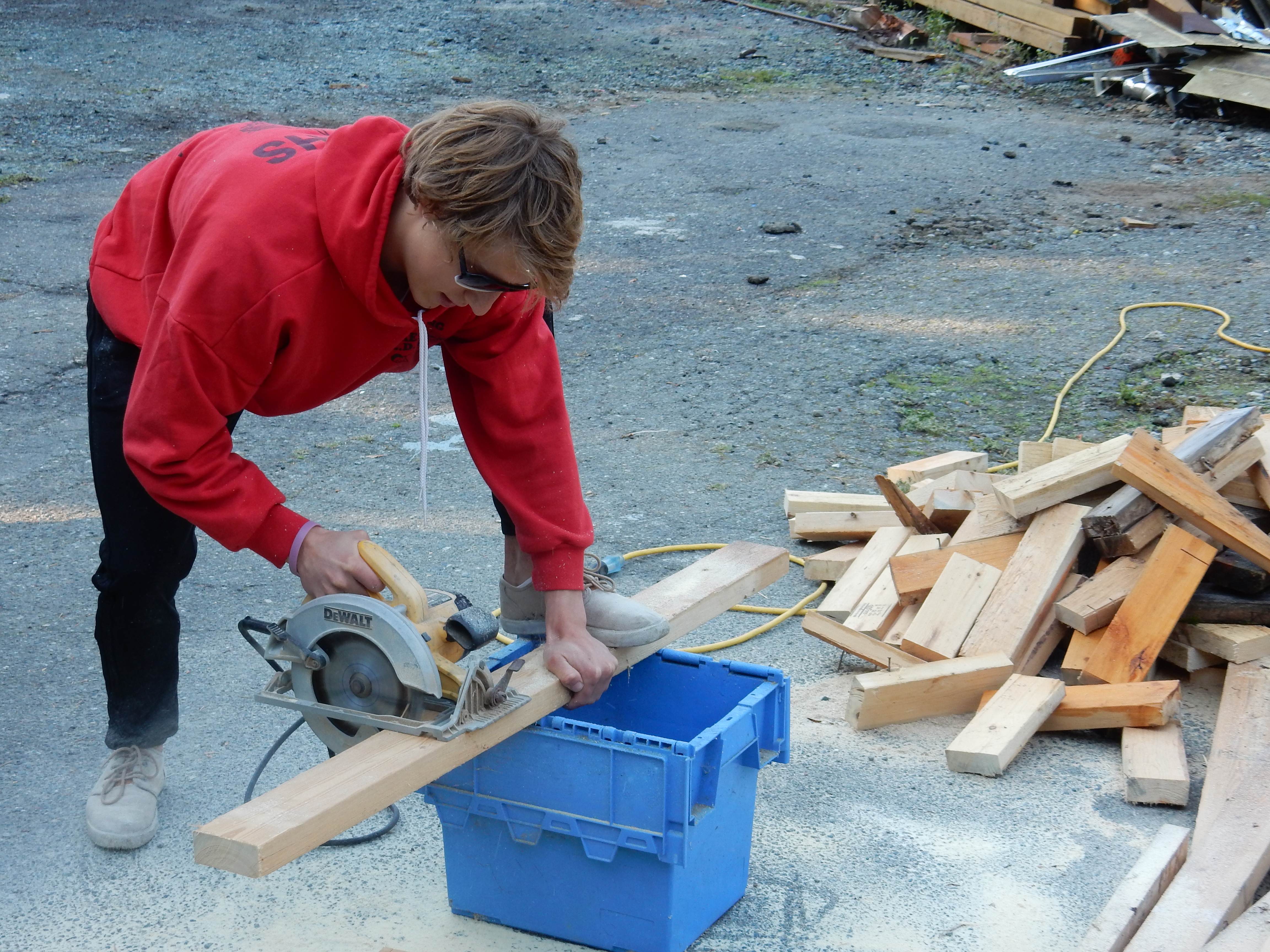 What to do with all of the salvaged wood?? Well, dice it up for the pizza oven, of course!