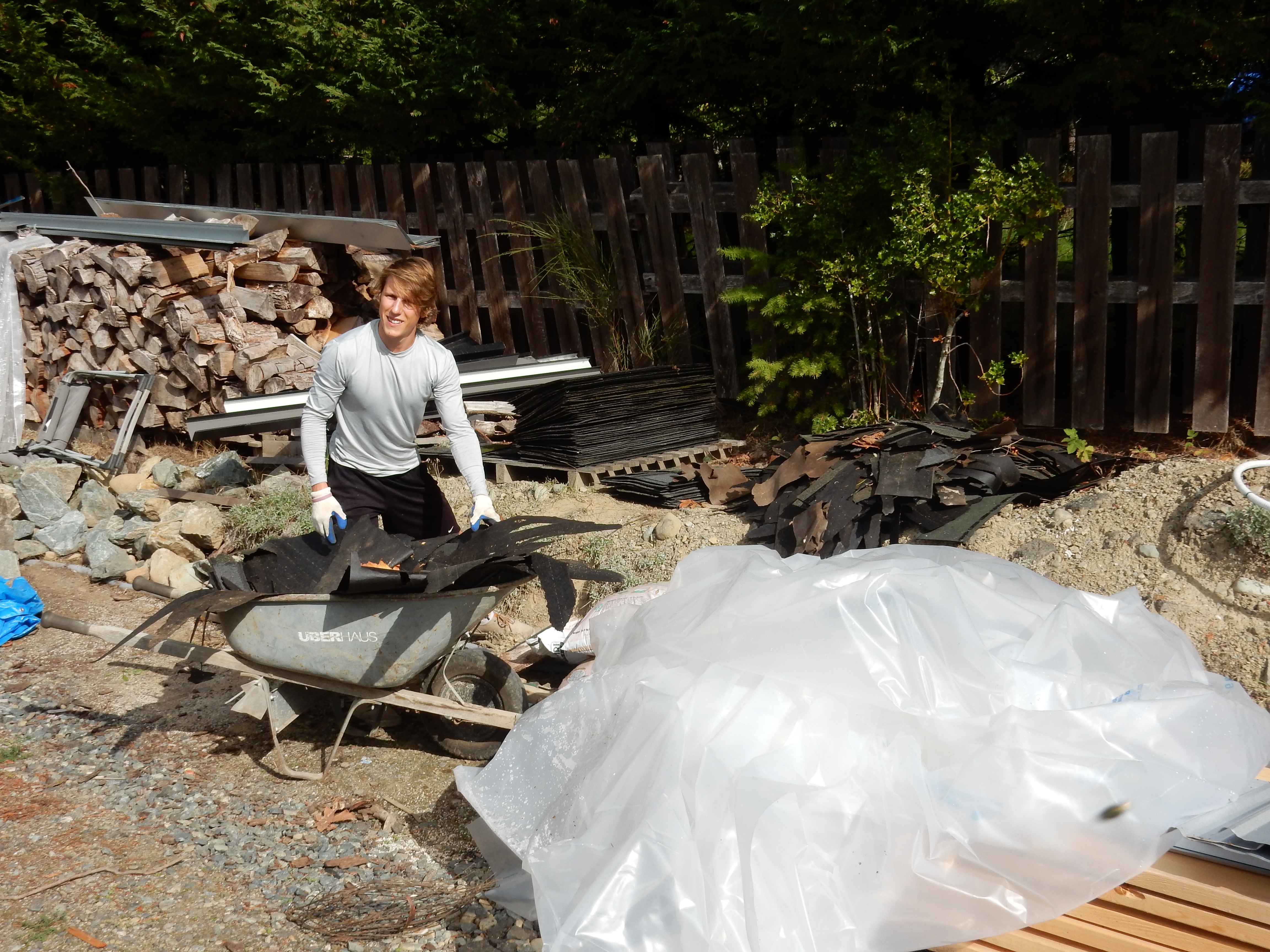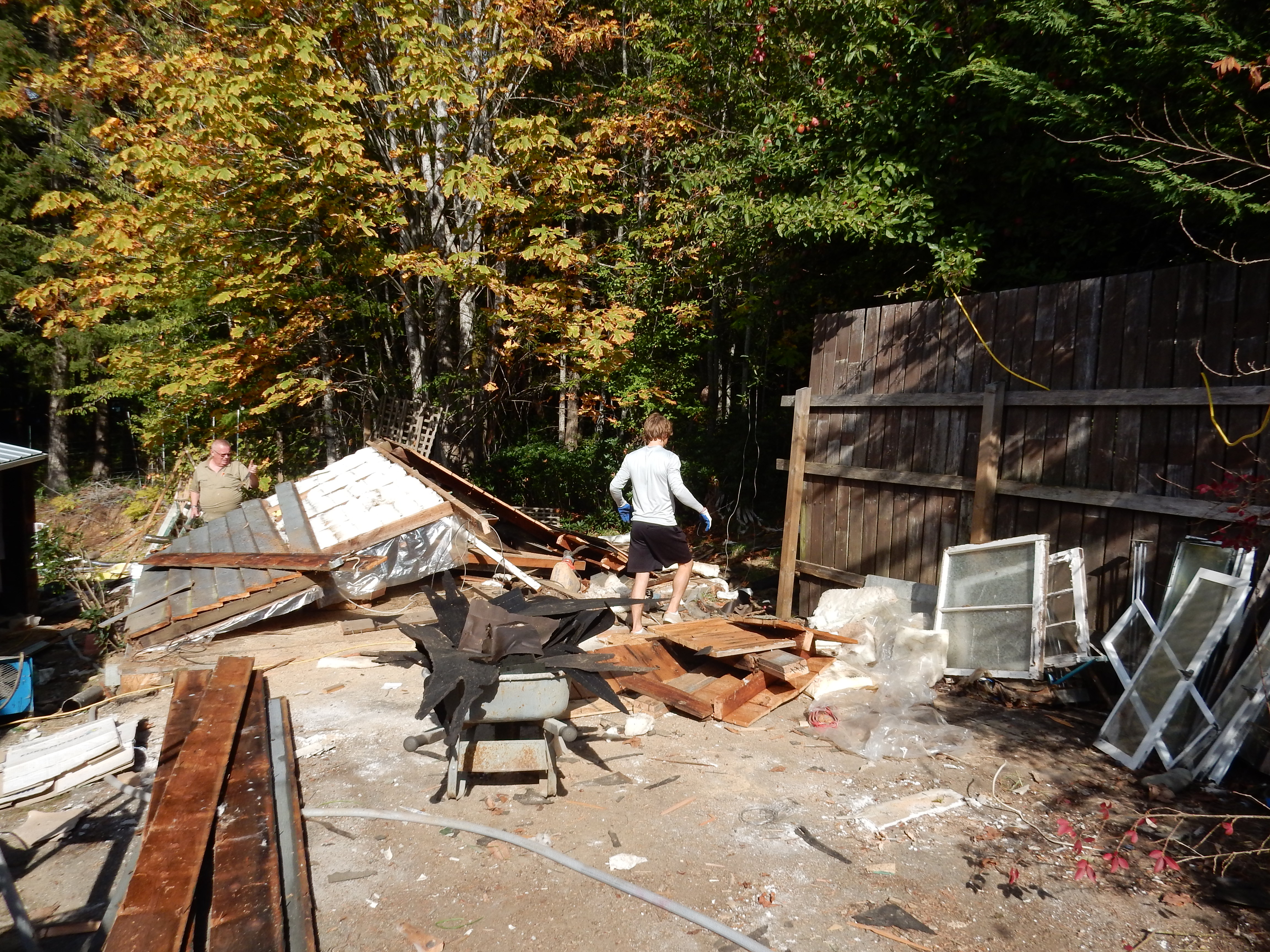 Kevin, Kevin’s father Ton and I got back to work early in the morning, continuing to haul down the walls of the garage.