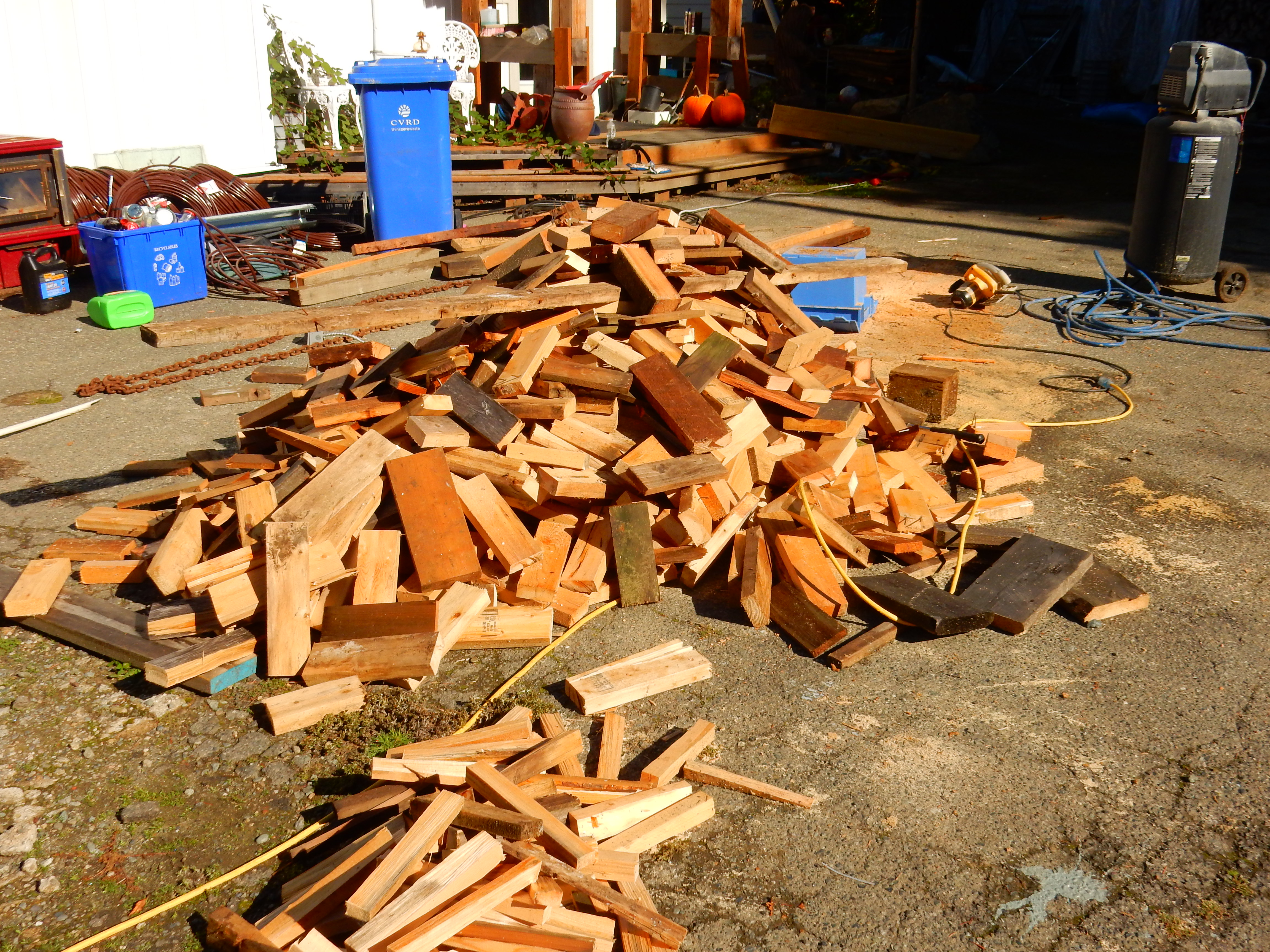Back in Shawnigan Lake, the pile of firewood continued to grow as we tore apart the garage.