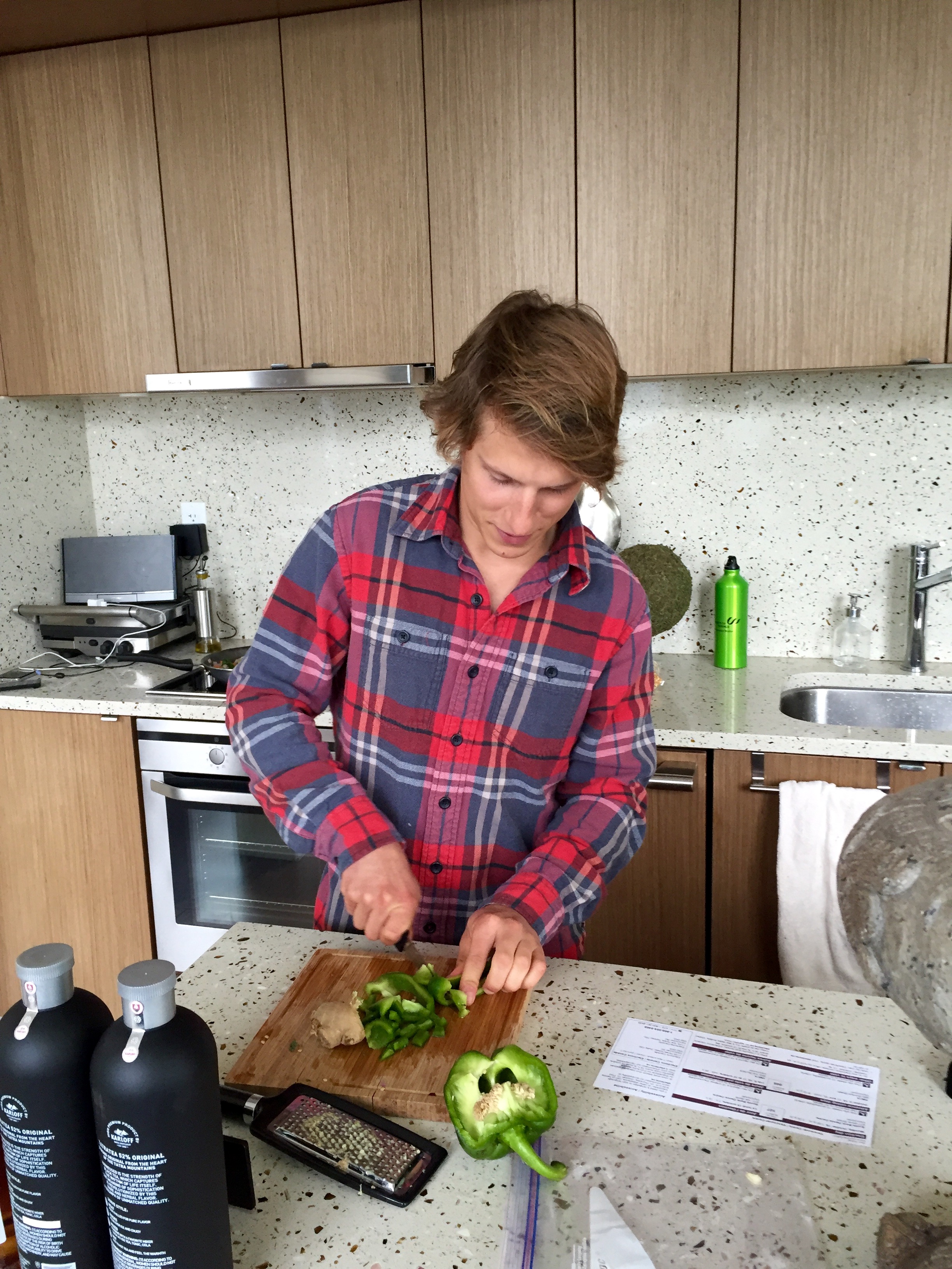 Manraj and I stayed in the apartment for lunch. I cooked us a mean turkey stir fry. According to this photo, I added some green peppers.